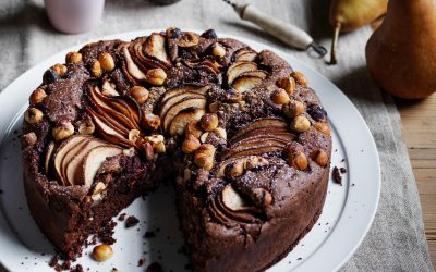 Chocolate pear olive oil cake