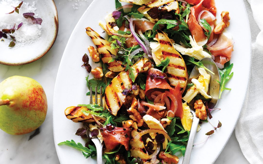 Grilled pear, rocket, walnut and prosciutto saladIngredientsDressing⅓ cup extra virgin olive oil2 tbsp Vino Cotto (found in dressing aisle)2 tbsp honeySalad2 pears, halved, cored and cut into wedges250 g baby rocket60 g walnuts, toasted1 ½ red onion, finely...